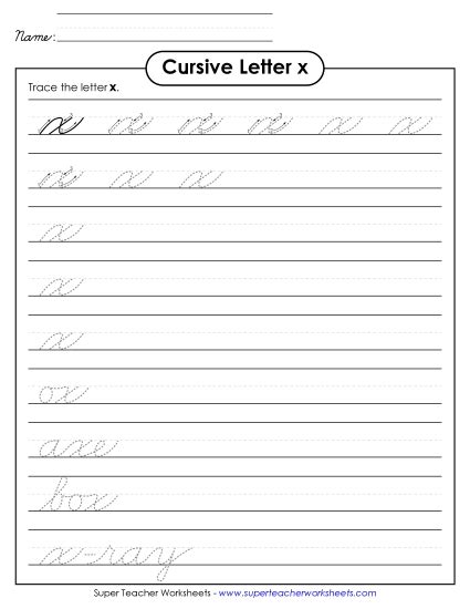 Lower Case Cursive X. Web demonstration to write cursive letters using the handwriting without tears method. All handwriting practice worksheets have are on primary writing paper with dotted lines so.