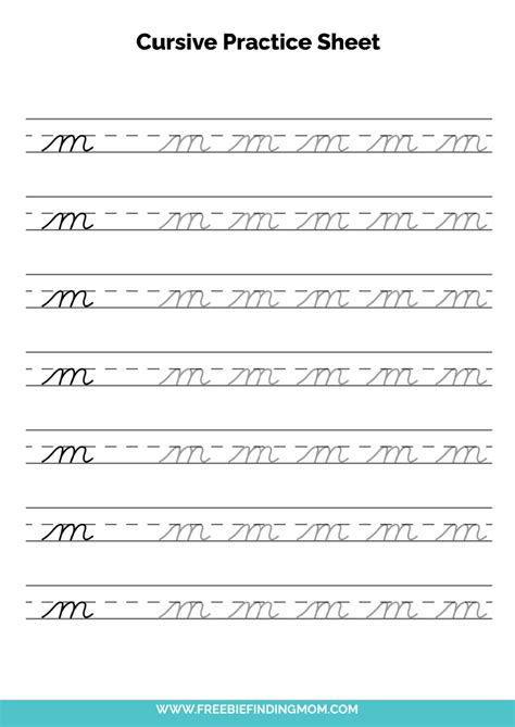 Lowercase Cursive M. This free worksheet provides practice writing the letters m to p with cursive. Begin your stroke on the left centerline.