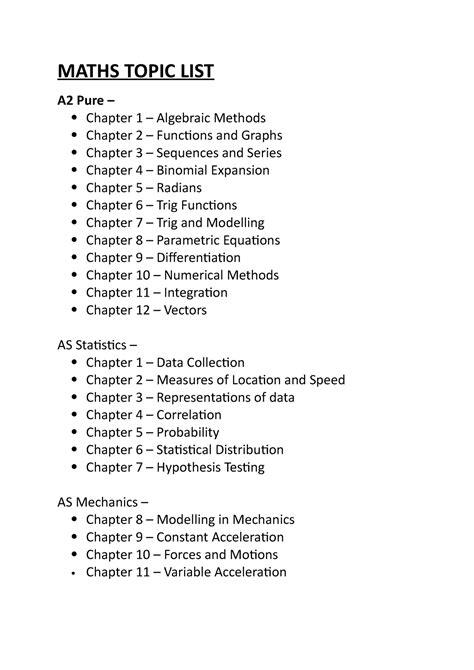 Math 1 Topics. Some of these lists link to hundreds of articles; Short answer questions range from a sentence or two through to a paragraph in length.