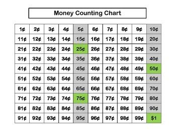 Web sean had pulled out his hundred chart and placed the first quarter on the number 25, the second quarter on the number 50, the first dime on 60, etc. Web depending on the student's level, approaches include: Counting money is the next step when students know basic monetary values and can use skills like skip counting to figure out how.